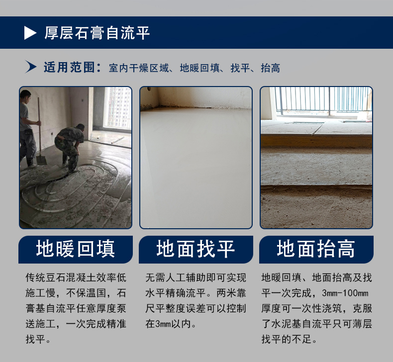 石膏基自流平砂漿的主要膠凝材料是石膏,并且具有自動(dòng)流平的性能,具有以下優(yōu)點(diǎn):